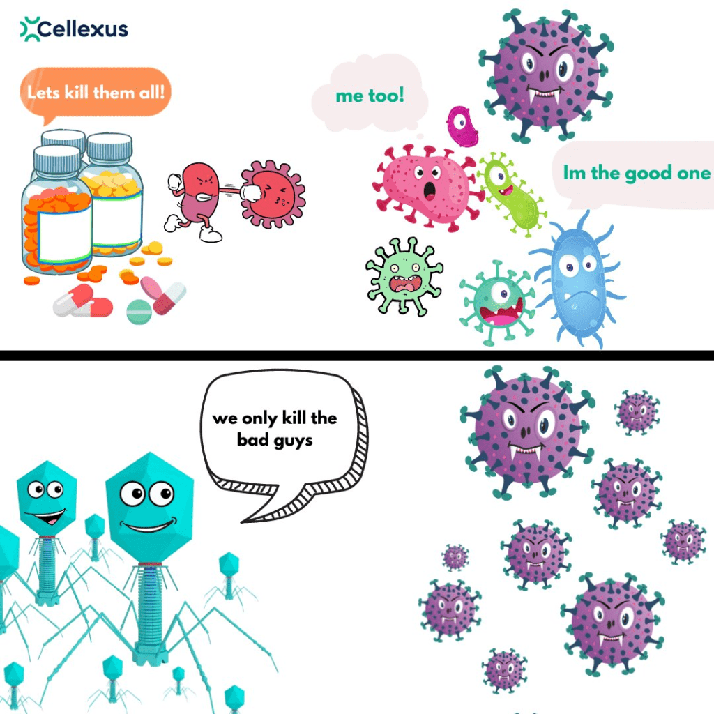While antibiotics are a crucial tool in fighting bacterial infections, their overuse, and misuse can have unintended consequences, including the destruction of beneficial bacteria in our gut. This collateral damage can lead to a range of negative health outcomes, including digestive problems, nutrient deficiencies, and a weakened immune system. To combat this problem, alternative therapies to antibiotics, such as phage therapy and FMT, are being explored and may offer new hope for treating bacterial infections while preserving our beneficial bacteria.