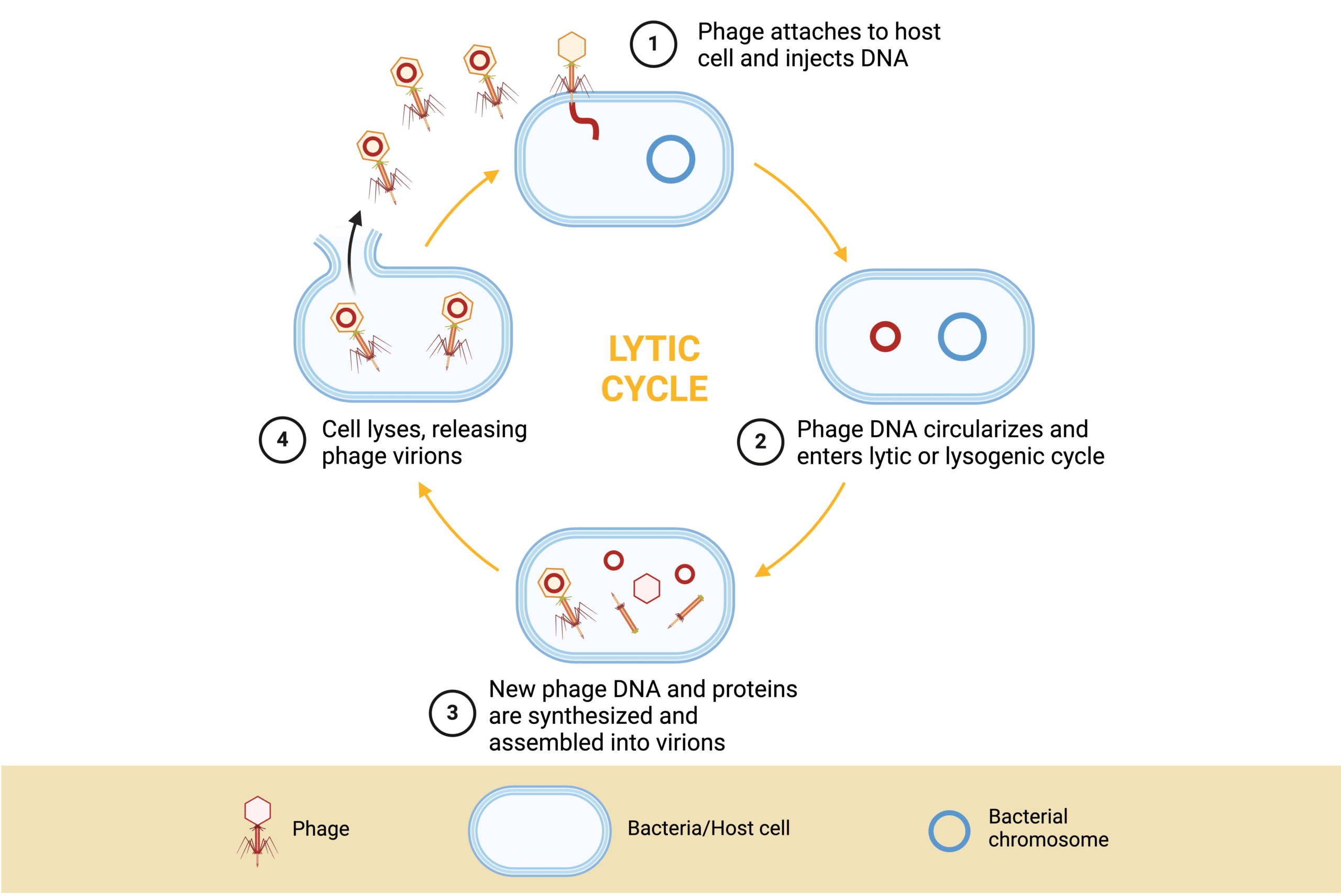 The final step, lysis, is a critical moment in the lifecycle of lytic bacteriophages. This is the phase where the bacterial cell is ruptured, and it’s what we will focus on in this post.
